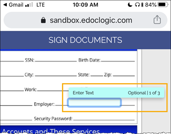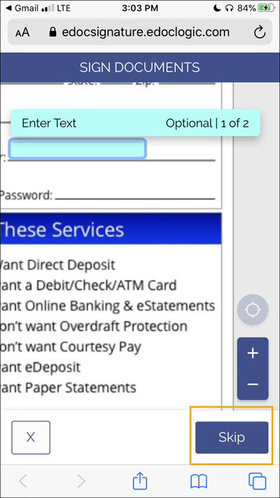 For all other signing elements that need information filled in, the signer can tap Skip or Next to move on to the next signing element.