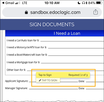 For auto-filled signing elements such as signature, date, and initials, the signer is automatically advanced to each signing element as the previous element is completed.